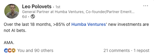A few days later, Leo Polovets of Humba Ventures, a prominent early-stage deep tech fund, posted the following on LinkedIn: